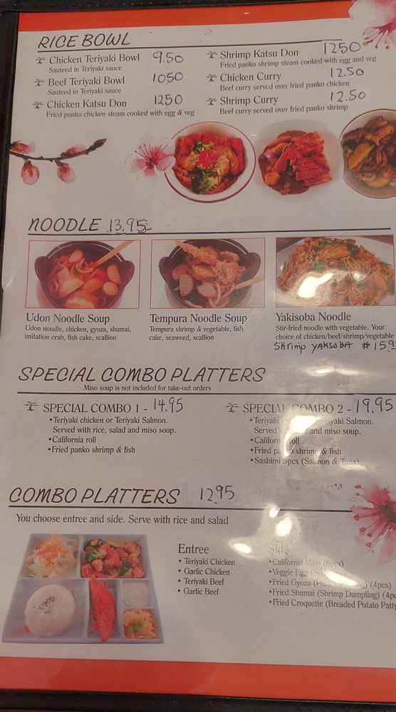 The menu features a variety of options, including Udon Noodle Soup and Yakisoba Noodles, each priced affordably at $14.95. Sushi enthusiasts can indulge in exquisite Nigiri selections, with fresh options like Sake (salmon) and Maguro (tuna) at just $6.00 each. For a more decadent experience, try the Sashimi Mix, showcasing 14 pieces of chef's choice for $26.95.